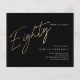 Budget minimaliste 80e anniversaire invitation de fête comprend stylé faux feuille d'or numéro écriture manuscrite Eighty et vos détails de fête en serif classique sur couleur arrière - plan noir, simple et élégant, grande surprise adulte jalon invitation d'anniversaire pour les hommes et les femmes. La couleur noire de l'arrière - plan peut être changée en n'importe quelle couleur de votre choix.