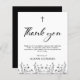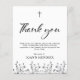 Black Floral Memorial Carte de remerciements' Une carte funéraire élégante avec des petits dessins floraux noirs et une élégante croix noire au-dessus de tout le texte. Vous pouvez personnaliser facilement avec le bouton "PERSONNALISER" avec votre propre message de remerciement et bien sûr toutes les autres données. Conçu par szdesign.
