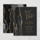 Le bord gauche de cet élégant mariage moderne, sauf la carte de date, est doté d'une bordure en aquarelle noire taillée avec une parties scintillant en faux or. Le texte personnalisable combine écriture manuscrite couleur or, cuivre et polices italiques sur un arrière - plan non noir. L'envers est assorti d'un design d'agate noir et or.