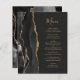 Le bord gauche de cet élégant menu mariage moderne comporte une bordure en aquarelle noire ornée d'une parties scintillant en faux or. Le texte personnalisable combine un script d'écriture manuscrite de couleur or et des polices de cuivre sur un arrière - plan non noir. L'envers est assorti d'un design d'agate noir et or.