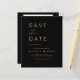 Budget Mariage Elegant Noir et Or Enregistrer les Cartes de Date qui ont une photo sur le devant. Les cartes Save the Date contiennent une typographie de script moderne, lettrée à la main, qui sont élégantes, simples et modernes à utiliser après que vous minimaliste simple célébration de mariage.