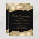 This trendy 50th wedding anniversary party invitation features sparkly gold faux foil and glitter top and bottom borders on a black background. The words "50th Anniversary" and the first names of the couple appear in casual gold-colored handwriting script, with the rest of the customizable text in sans serif font. The same gold foil and glitter border design appears on the reverse side.