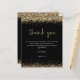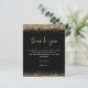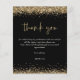 Budget Black Gold Parties scintillant 2024 Graduation Merci. Un prix économique plus petit (4.5 x 5.6") semi-brillant qui est un stock de carte de 110 gsm, semblable en épaisseur à une carte postale. REMARQUE : ONE par feuille. D'élégantes bordures de confettis en faux parties scintillant doré sont en haut et en bas et aussi à l'arrière. La graduation est conçue dans un style d'écriture moderne. Personnalisez facilement le reste du texte à vous.