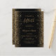 Cette élégante invitation à la fête du 50e anniversaire moderne présente des bordures de parties scintillant en or sur les bords gauche et droit. Le texte personnalisable combine écriture manuscrite dorée, cuivre et polices italiques sur un arrière - plan noir. L'envers est assorti d'une parties scintillant en noir et or.