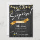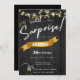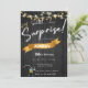 L'invitation numérique simple, minimale en noir et blanc, fête d'anniversaire surprise avec arrière - plan en bois et plaque d'or.