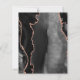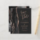 Le bord gauche de cet élégant mariage moderne, à l'exception de la carte de date, est doté d'une bordure en aquarelle noire recouverte d'une parties scintillant en or rose. Le texte personnalisable associe écriture rose, copperplate et polices italiques sur un arrière - plan gris fusain foncé. L'envers présente un design d'agate d'or noir et rose assorti.