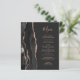 Le bord gauche de cette élégante faire-part de mariage moderne est orné d'une bordure en aquarelle noire ornée d'une parties scintillant en or rose. Le texte personnalisable combine un script d'écriture manuscrite rose rose et des polices de caractères sur cuivre sur un arrière - plan non noir. L'envers présente un design d'agate d'or noir et rose assorti.