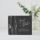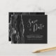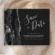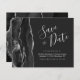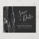 Cette élégante carte de date moderne comporte une bordure d'aquarelle noire décorée d'une parties scintillant en faux argent. Le texte personnalisable combine écriture manuscrite, copperplate et polices italiques en gris argenté sur un arrière - plan non noir. Le dos est assorti d'un design d'agate noir et argent.