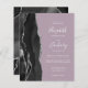 Le bord gauche de cette élégante faire-part de mariage moderne est orné d'une bordure en aquarelle noire et d'une parties scintillant en faux argent. Le texte personnalisable combine écriture manuscrite blanche, copperplate et polices italiques sur un arrière - plan mauve. L'envers présente un design d'agate noir et argent assorti. REMARQUE : Les enveloppes ne sont pas automatiquement incluses dans ces invitations budgétaires, alors n'oubliez pas de choisir l'option "enveloppes blanches" !