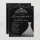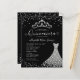 Glam moderne Black Silver Diamond Tiara Princess Gown Robe Parties scintillant Confetti Sparkle 15e anniversaire Quinceanera Invitation