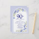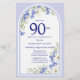 L'élégant modèle d'invitation à la fête du 90e anniversaire dispose d'une arche fleurie Boho faite de marguerites blanches et de fleurs sauvages bleus. Cet article fait partie de la collection Boho Arch Blue and White Floral Collection.