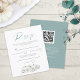 Un rapport qualité/prix BUDGET alternative sur une taille 4.5 x 5.6" semi-brillant poids 110lbs, qui est d'une épaisseur similaire à une carte postale (cependant ne convient pas à utiliser comme carte postale.) VEUILLEZ NOTER qu'il y a UN par feuille. Budget Blanc Citrouille QR Code Mariage RSVP. Donnez à vos invités le choix de répondre en affichant ou via votre site web avec ce design minimaliste d'automne avec des fleurs blanches, citrouille et feuillage turquoise. RSVP est dans un script moderne et personnalise facilement le reste du texte. Pour plus de commodité de vos invités à répondre soit en vous envoyant ceci à nouveau ou en alternative à répondre en ligne. Ajoutez votre code QR à votre page de réponse sur votre site Web mariage au verso en remplaçant le code QR sur l'exemple. Vous pouvez créer des codes QR gratuitement en ligne. Il suffit de chercher "créateur de code QR" et beaucoup d'options viennent créer gratuitement.