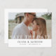 Budget Photo moderne et élégante Enregistrer la Carte Mariage Date. La carte d'invitation à la date inclut la typographie blanche et le design chic et simple sur un arrière - plan blanc que vous pouvez ajouter votre photo de fiançailles customisé à.