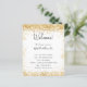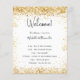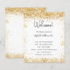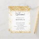 Un programme de mariage moderne et élégant, chronologie. Un arrière - plan blanc décoré avec de la poussière de parties scintillant en faux or. Personnalisez et ajoutez vos noms et les détails du mariage. Lettres de couleur noire. Si vous avez plus de texte, il est possible de réduire l'espace de ligne.