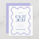 Ce mariage enregistrer la carte de date est doté d'une bordure ondulée. Il utilise des couleurs calmes comme la lavande inspirée des champs de lavande. Les fontes amusantes et élégantes apportent une touche d'élégance, et les mots au centre sont mis en surbrillance en bleu vif pour une pop de couleur amusante et utilise une taille de police plus grande.