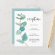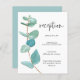 Budget Blue Eucalyptus Wedding Réception Détails. Un prix économique PETIT 4,5 po x 5,6 po alternatif. Disponible dans un STOCK CARTE SEMI GLOSS 110 lb qui est l'option par défaut (recommandé pour les invitations), OU un STOCK PAPIER THINNER SATIN FINISH 80 lb (idéal pour les boîtiers). Les enveloppes sont en option et légèrement plus grandes que la taille de la carte. Elégance moderne pour vos détails de réception avec une branche de feuilles eucalyptus courant vers la gauche, et mettre la typographie en noir pour le titre principal complétant le reste du texte que vous pouvez facilement personnaliser.
