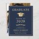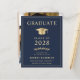Élégant et économique, le bleu foncé classique faire-part de graduation avec un casquette de grade or et la typographie moderne en or clair pour le nom du diplômé, année de classe, école, collège ou université, diplôme et majeure ou distinctions. Ajoutez la photo du grad sur le dos.