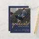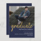Moderne Formal Blue Gold Graduate Script Faire-part de graduation