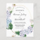Le design floral moderne présente des hydrangées bleues poussiéreuses et des roses blanches en ivoire qui ornent un cadre doré ovale. La typographie moderne ajoute à la vibe Boho. Cet article fait partie de la collection Modern Blue Hydrangea.