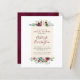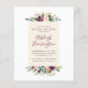 Élégantes invitations à la douche nuptiale fleurie avec des arrangements floraux d'aquarelle supérieure et inférieure dans les tons rose roux, marsala, et bordeaux avec une végétation luxuriante. Dans le cadre de la sélection du budget ici sur Zazzle, ces invitations ne sont pas fournies avec des enveloppes et ne s'insèrent pas dans une enveloppe de taille standard. La taille la plus proche est A6 mais il y aura un écart d'environ un demi-pouce. Si vous n'avez pas peur du manque de douceur, vous pourriez utiliser des enveloppes A6 aussi largement disponibles. Sinon, cette conception peut être transférée dans un format standard 5x7 (avec enveloppes) à l'aide de l'outil de transfert de conception. À titre d'exemple, au moment de la rédaction du présent document, 100 invitations budgétaires (y compris une remise sur le volume) coûteraient environ 39 $, alors que 100 invitations standards 5x7, y compris des enveloppes, coûteraient environ 135 $. Votre kilométrage peut varier en fonction des codes promo disponibles de Zazzle, des ventes à l'échelle du site ou des changements de prix.
