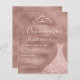 Glam moderne Blush Rose Or Diamant Tiara Princess Gown Robe Parties scintillant Étincelle 15e anniversaire Quinceanera Invitation