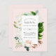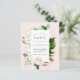 Invitation à la douche botanique d'été avec aquarelle verte tropicale contre arrière - plan rose rousse. Vos détails de douche nuptiale sont affichés avec une typographie élégante. Dans le cadre de la sélection du budget ici sur Zazzle, ces invitations ne sont pas fournies avec des enveloppes et ne s'insèrent pas dans une enveloppe de taille standard. La taille la plus proche est A6 mais il y aura un écart d'environ un demi-pouce. Si vous n'avez pas peur du manque de douceur, vous pourriez utiliser des enveloppes A6 aussi largement disponibles. Sinon, cette conception peut être transférée dans un format standard 5x7 (avec enveloppes) à l'aide de l'outil de transfert de conception. À titre d'exemple, au moment de la rédaction du présent document, 100 invitations budgétaires (y compris une remise sur le volume) coûteraient environ 39 $, alors que 100 invitations standards 5x7, y compris des enveloppes, coûteraient environ 135 $. Votre kilométrage peut varier en fonction des codes promo disponibles de Zazzle, des ventes à l'échelle du site ou des changements de prix.