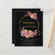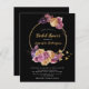 Ce Budget Black Bridal Shower Invitations - présente des fleurs bohèmes couronnes dorées boho, des pampas, des fruits et des gouttes d'or sur l'arrière - plan noir. L'envers de cette invitation est noir laconique.