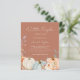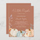 Cette petite invitation au baby shower floral automne citrouille est à la hauteur d'un baby shower élégant. Le design présente de beaux citrouilles d'aquarelle en blanc, bleu et orange avec des fleurs de boho en terre cuite et ivoire avec de la verdure sur un arrière - plan en terre cuite. Une police de script élégante est la touche finale parfaite. Personnalisez avec tous les détails pour votre baby shower.