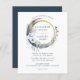 Ce design mariage de saumons boho présente les noms du couple encadrés par une couronne d'aquarelle qui comprend un morceau de lune bleue indigo, une pelouse de pampas, des fleurs blanches et un cercle de faux feuille d'or. Personnalisez le texte bleu avec les détails du mariage. L'envers est bleu foncé.