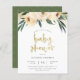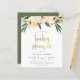 Cette invitation bohème présente "baby shower" dans un script en faux or brossé, encadré de confettis, trois fleurs roses rousses, et aquarelle feuillage. Vos détails apparaissent en dessous dans une élégante typographie. Les cartes se retournent vers une belle nuance de vert avec un simple motif blanc. Ce design est idéal pour des événements extérieurs ou des douches à thème fleuri. Dans le cadre de la sélection du budget ici sur Zazzle, ces invitations ne sont pas fournies avec des enveloppes et ne s'intègrent pas parfaitement dans une enveloppe de taille standard. La taille la plus proche est A6 mais il y aurait un écart d'environ un demi-pouce. Si cela ne vous dérange pas, vous pouvez utiliser des enveloppes A6 aussi largement disponibles. Sinon, cette conception peut être transférée dans un format standard 5x7 (avec enveloppes) à l'aide de l'outil de transfert de conception.