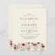 Un design botanique boho avec une bordure inférieure de fleurs sauvages bordeaux aquarellés. Modifiez facilement le texte gris et bordeaux du fusain sur un arrière - plan crème ivoire. Une bordure florale correspondante apparaît au verso de la carte.