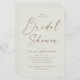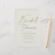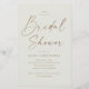 Budget Simple Gold Script Bridal Shower Invitation avec élégante calligraphie manuscrite et type minimal. Cliquez sur le bouton Modifier pour customiser cette conception.