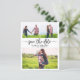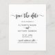 Budget moderne élégant boho noir et blanc script 3 photo collage mariage enregistrer la date faire-part personnalisé abordable papier bas budget. Modèle design chic avec trois (3) photos de couple et élégante écriture de calligraphie à la main "Enregistrer la date" texte en noir sur blanc couleur arrière - plan. Si vous avez besoin d'aide ou d'éléments correspondants, veuillez contacter le concepteur.