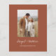 Budget Personnalisez cette Boho Simple Elegant Terracotta Burnt Orange and White Stylish Invitation avec votre message et détails avec une photo élégante au dos. Cette invitation minimaliste comprend une typographie manuscrite stylisée avec une couleur moderne pour la célébration spéciale du mariage.