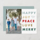 Une carte moderne de Noël photo de vacances 1 photo avec un type audacieux et lumineux dans une variété de couleurs alternées et de fausse feuille d'or.