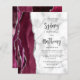 Le bord gauche de cette élégante faire-part de mariage moderne est orné d'une bordure d'aquarelle bordeaux et d'une fausse parties scintillant argentée. Le texte personnalisable combine script de calligraphie noir et police sans serif sur un arrière - plan en marbre gris et blanc. L'envers est assorti d'un design d'agate bordeaux et argenté.