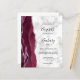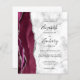 Le bord gauche de cette élégante faire-part de mariage moderne est orné d'une bordure d'aquarelle bordeaux et d'une fausse parties scintillant argentée. Le texte personnalisable combine écriture manuscrite, copperplate et polices italiques en noir sur un arrière - plan gris et blanc en marbre. L'envers offre de l'espace pour les détails du mariage sur un arrière - plan blanc solide, ainsi qu'un code QR que les invités peuvent scanner pour visiter votre site Web et RSVP, ce qui permet d'économiser le coût d'impression et d'envoi de RSVP séparé.
