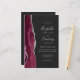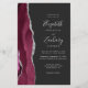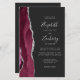 Le bord gauche de cette élégante faire-part de mariage moderne est orné d'une bordure d'aquarelle bordeaux et d'une fausse parties scintillant argentée. Le texte personnalisable combine écriture gris argent, copperplate et polices italiques sur un arrière - plan non noir. Ajoutez des détails supplémentaires au verso, ainsi qu'un code QR pour aider vos invités à visiter votre site Web mariage.