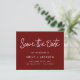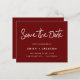 Budget Burgundy Marsala Moderne et Élégant Mini-Mini Hand Lettered Script Enregistrer la date Carte postale Mariage. La carte d'invitation à la date inclut une typographie de script à la main moderne avec un design chic et simple auquel vous pouvez ajouter votre photo de fiançailles customisé à.