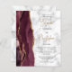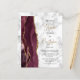 Le bord gauche de cette élégante faire-part de mariage moderne est orné d'une bordure en aquarelle bordeaux et d'une parties scintillant en faux or. Le texte personnalisable combine un script doré tendance et des polices noires sans serif sur un arrière - plan en marbre gris et blanc. L'envers offre de l'espace pour les détails mariages sur un arrière - plan en marbre, ainsi qu'un code QR que les clients peuvent scanner pour visiter votre site Web et RSVP, qui économisent le coût d'impression et d'envoi de cartes RSVP séparées.