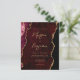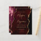 Cette élégante invitation de mariage présente une image arrière - plan d'agate d'aquarelle bordeaux parée de parties scintillant en faux or. Le texte personnalisable combine écriture manuscrite moderne couleur or, cuivre et polices italiques. L'envers présente un design coordonné d'agate bordeaux et or.