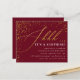 Budget Bourgogne & Gold Confetti Invitations Surprise Party. Chut... C'est une surprise ! Célébrez votre fête d'anniversaire surprise avec ces invitations élégantes avec des confettis en feuille d'or et un script contre un arrière - plan rouge bordeaux. Vos détails apparaissent dans la typographie serif élégante.