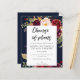 ** LE PAPIER SATIN EST PAPIER MINCE. METTEZ À NIVEAU LE PAPIER POUR UN PAPIER PLUS ÉPAISSE. A UNE OPTION POUR ENVELOPPES. *** Économisez de l'argent sur les invitations officielles avec cette petite invitation qui a une option pour les enveloppes. Changez les plans pour votre mariage avec cette Invitation Bleue Burgundy Marsala Floral & Navy. Petite version. Vous voulez une version plus grande ? Consultez notre collection de mariages de Burgundy Marsala pour les cartes. https://www.zazzle.com/collections/change_cancel_delay_wedding_announcements-119305647416996151?rf=238937196885903396