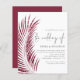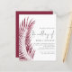 MinimalistBurgundy Parties scintillant Leaf QR Code Mariage. Un prix économique PETIT 4,5 po x 5,6 po alternatif. Disponible dans un STOCK SEMI-GLOSS 110 lb CARD qui est l'option par défaut (plus épais pour les invitations), OU un STOCK SATIN FINISH 80 lb THINNER PAPER (idéal pour les boîtiers). Ajoutez votre code QR à votre site Web mariage au dos fait de cette option pratique pour vos invités à RSVP et voir tous les détails sans avoir besoin de RSVP séparé et de cartes de détails. Une fausse feuille de parties scintillant tropicale bordeaux court le long de la gauche et un bordeaux de coordination est également à l'arrière et le libellé est aligné à droite. Le Mariage de est dans un script de style manuscrit et le reste du texte que vous pouvez facilement personnaliser.