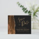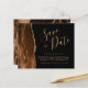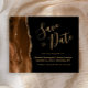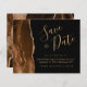 Cet élégant budget enregistrer la carte date dispose d'une bordure d'aquarelle marron mocha taillée avec parties scintillant en faux or. Le texte personnalisable combine écriture manuscrite couleur or, cuivre et polices italiques sur un arrière - plan noir. L'envers est assorti d'un design d'agate brun et or.