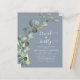 Budget Brunch et Bubbly Eucalyptus Dusty Blue Greenery Succulent Botanical Watercolor Emerald Green Spring Wedding Bridal Shower Invitations sur arrière - plan blanc - comprend une belle et élégante typographie avec feuilles botaniques modernes et la verdure pour la fête spéciale Mariée à être.