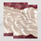This elegant modern wedding menu features a top and bottom borders of burgundy red watercolor agate trimmed with gold faux glitter. The customizable text combines charcoal gray whimsical handwriting and sans serif fonts on a background image of ivory silk or satin.