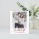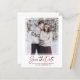 Convivial et abordable. La photo de votre couple est présentée sur cette élégante carte de datation. Un cadre blanc simple lui donne l'importance qu'il mérite. Enregistrer la date est écrit dans un texte moderne et tendance. Deux lignes de texte vous permettent de personnaliser votre message. Conçu pour embellir facilement n'importe quelle photo de style pour n'importe quelle saison. Très facile à customiser.