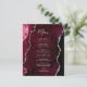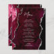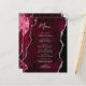 This elegant modern wedding menu features a burgundy red watercolor agate background trimmed with faux silver glitter. The customizable text combines silver gray handwriting script and copperplate fonts. The reverse side features a matching burgundy and silver agate design.