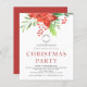 Budget Business Poinsettia Logo Fête de Noël Invitation. Un rapport qualité/prix plus petit 4,5 x 5,6 pouces alternatif sur une carte semi-brillante 110gsm, qui est d'une épaisseur similaire à une carte postale. Pour votre fête annuelle de vacances d'entreprise pour vos employés ou pour les clients et les événements festifs. Ce design avec votre logo, a de belles fleurs rouges d'hiver et de la verdure au sommet.